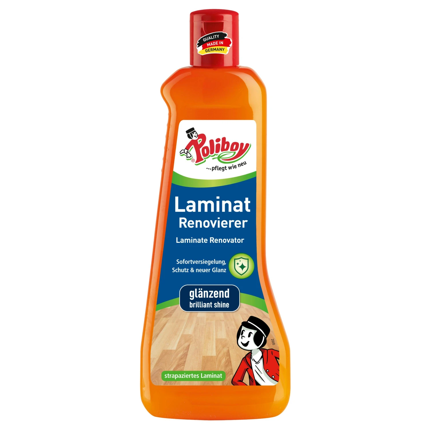Der POLIBOY Laminat Renovierer frischt strapaziertes Laminat auf und sorgt für neuen lang anhaltenden Glanz und Schutz. Die Haltbarkeit der aufgebrachten Schutzschicht beträgt 6 Monate und länger, je nach Gebrauch und Bodenbeschaffenheit. Der POLIBOY Laminat Renovierer bringt schnell ein überzeugendes Ergebnis. Streifenförmig auf den gut gereinigten Boden auftragen, gleichmäßig verteilen und abtrocknen lassen. Die Rezeptur mit speziellen Polymeren und Hartwachsen bildet beim Abtrocknen einen dünnen Schutzfilm, der nicht nur neuen Glanz bringt, sondern auch kleine Kratzer und Schrammen überdeckt. Zusätzlich ist der Boden wieder vor Feuchtigkeit und Abnutzung geschützt. Andere strapazierte Flächen – z.B. im Eingangsbereich oder Laufspuren – können durch einen zweiten Auftrag noch intensiver geschützt werden. Da der POLIBOY Laminat Renovierer keine Lösemittel und nur hochwertige Rohstoffe enthält, kann er bedenkenlos in Kinder- und Schlafzimmern angewendet werden.